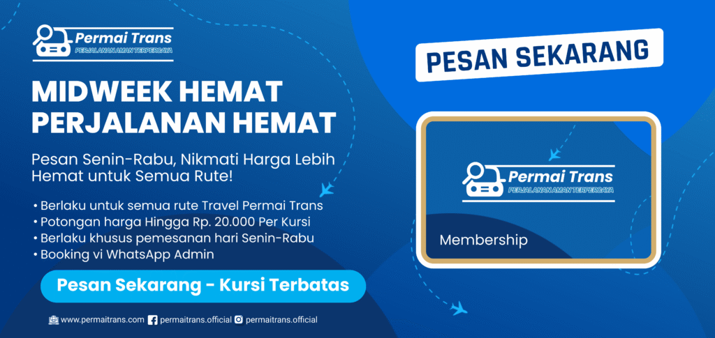 Nikmati perjalanan yang nyaman dan aman bersama Permai Trans. Melayani travel reguler, paket wisata, dan rental mobil dengan harga terjangkau.