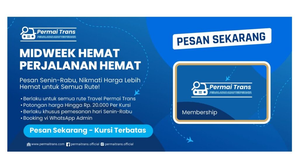 Permai Trans adalah operator travel berpengalaman yang telah melayani di bidang transportasi darat selama lebih dari 10 tahun. Dengan komitmen penuh terhadap kenyamanan dan keamanan pelanggan, kami terus berkembang menjadi pilihan utama transportasi di Indonesia.